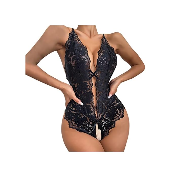 Clothes for Women Sexy Lingerie Women Snap Crotch Lingerie Sexy Lace Bodysuit Deep V Teddy Lace