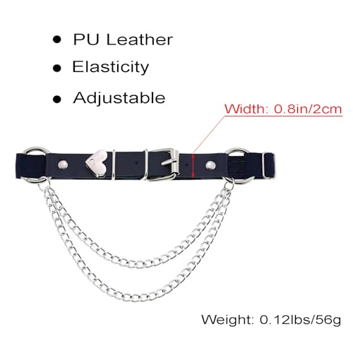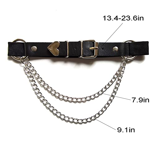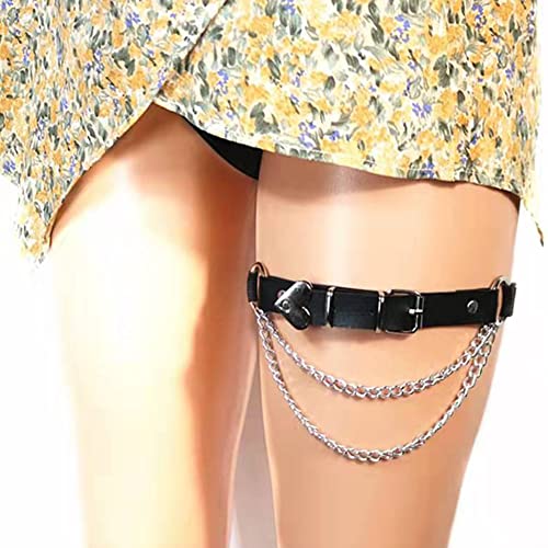Lockban Adjustable Heart-Shaped Thigh Garter 2 Pieces Punk Leather Garter Belts Leg Garter with Chains Body Accessories