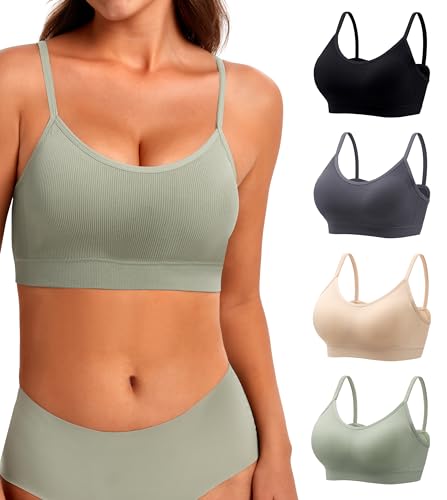 Angelhood Sports Cami Bras Pack for Women – Basic V-Neck Padded Seamless Bras with No Underwire