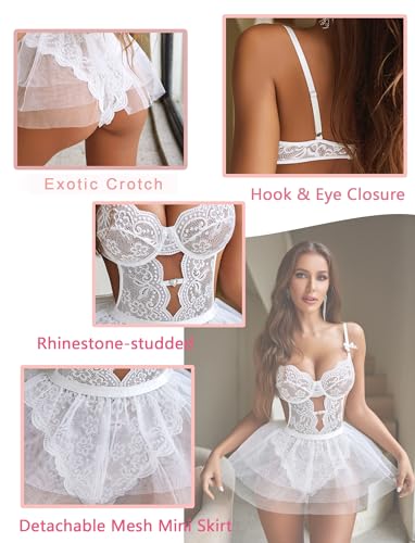 Avidlove Sexy Lingerie Set Lace Underwired Bodysuit with Detachable Mesh Mini Skirt Push Up Teddy Lingerie