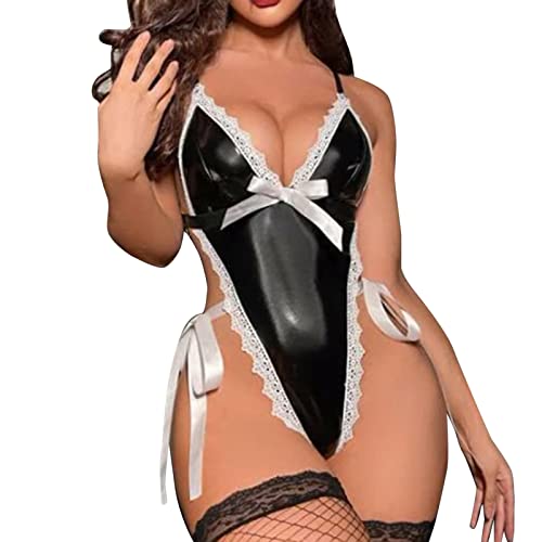 Clothes for Girls Sexy Underwear Girls Erotic Underwear Sexy Costumes Black Lace Up Leather Bondage Backless Teddy Sexy