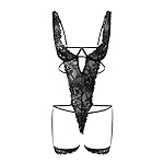 Clothes for Women Sexy Lingerie Women Snap Crotch Lingerie Sexy Lace Bodysuit Deep V Teddy Lace Steel Trop Push UP