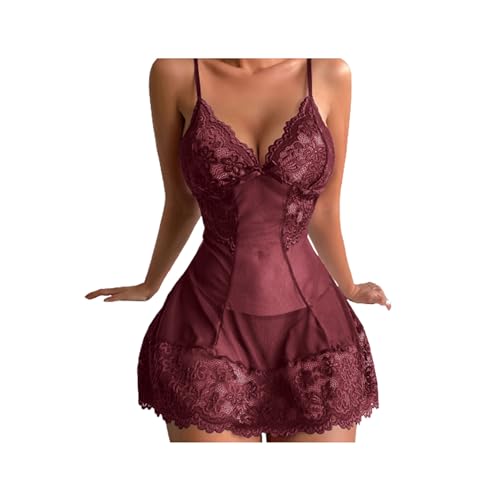 Lingerie Sets for Women Sexy Deep V-neck Teddy Nightdress with Panty Hollow Out Babydoll Sleepwear Boudoir Chemise