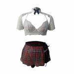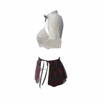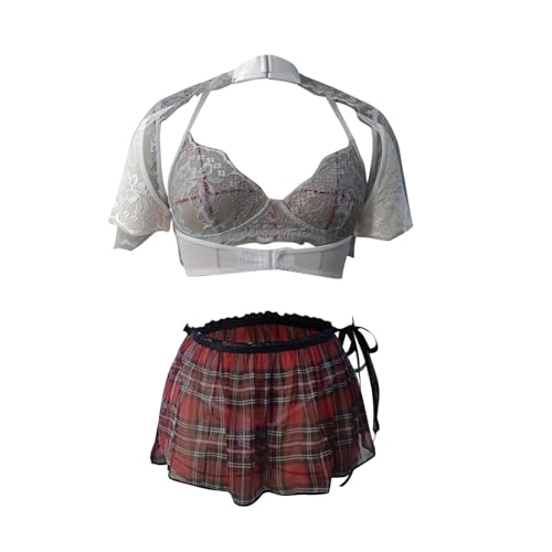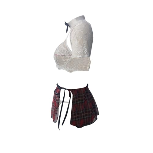 Lingerie Sets for Women Sexy Lace Bra Tie Mini Skirt with Thong Hollow Out See Through Boudoir Outfits Mesh Nightwear