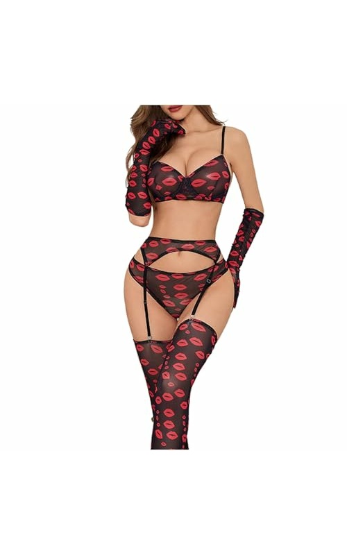 Lingerie Sets for Women Sexy Lingerie with Stockings Gloves and Garter Belt Set Deep V-Neck Bodysuit Soft Nightgown