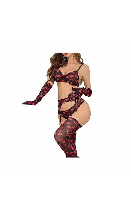 Lingerie Sets for Women Sexy Lingerie with Stockings Gloves and Garter Belt Set Deep V-Neck Bodysuit Soft Nightgown