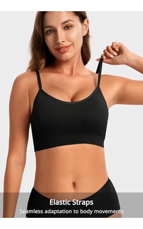 Angelhood Sports Cami Bras Pack for Women – Basic V-Neck Padded Seamless Bras with No Underwire