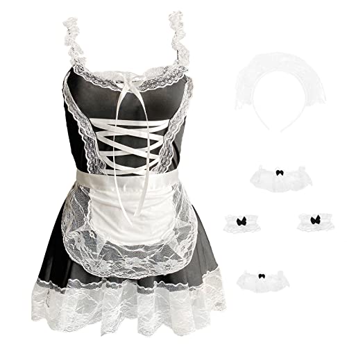 mzenuop Maid Dress Cosplay Sweet Classic Apron Costume with Socks