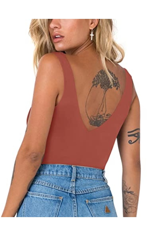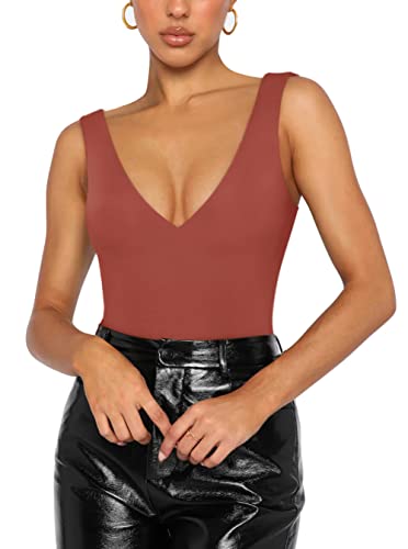 REORIA Butsmooth® Womenâs Trendy Sexy Plunge Deep V Neck Sleeveless V Backless Going Out Tank Bodysuits Tops
