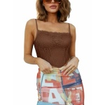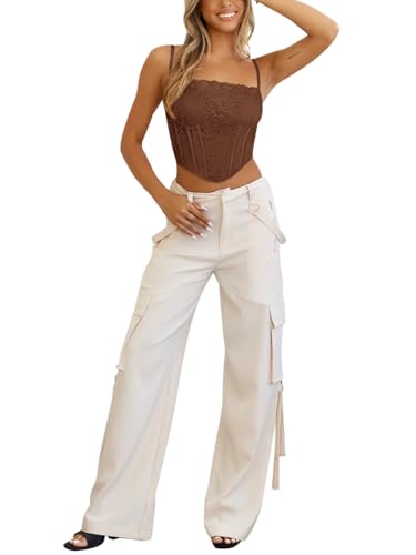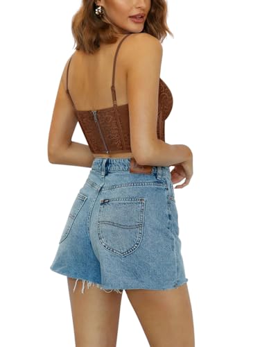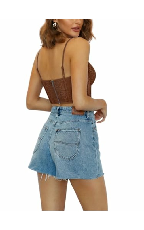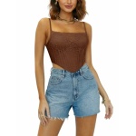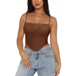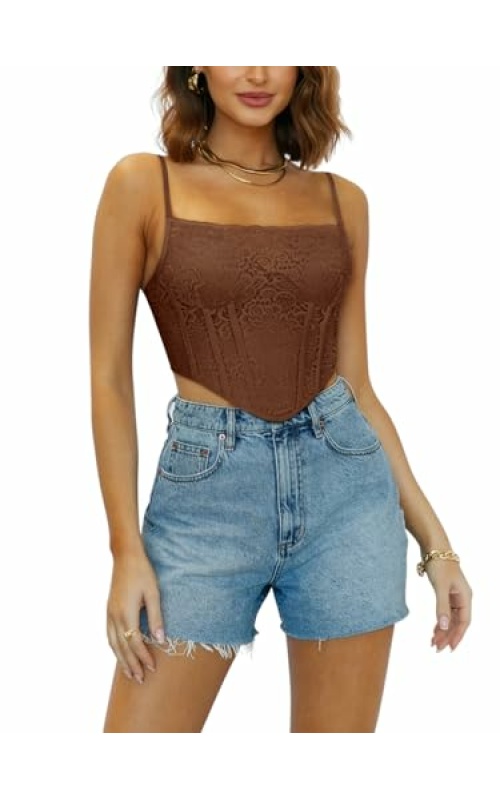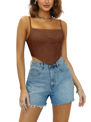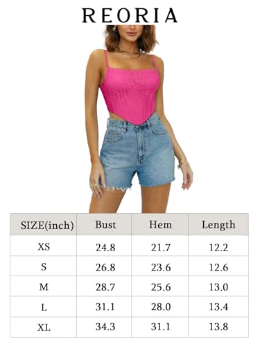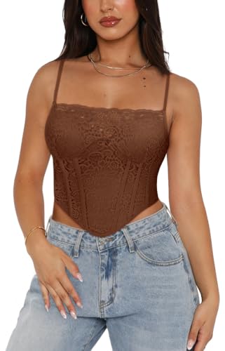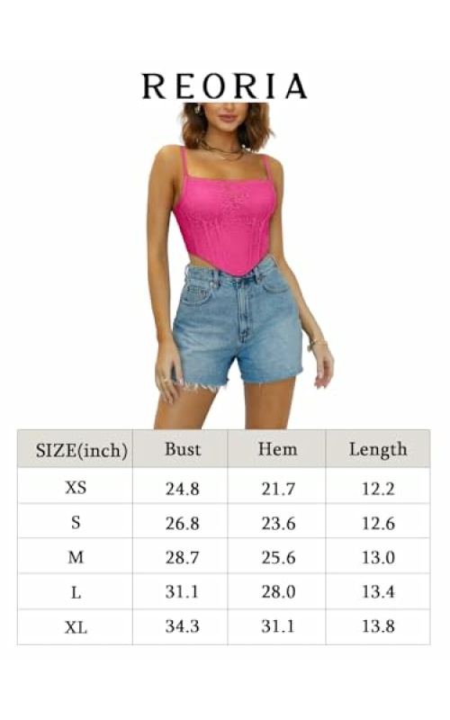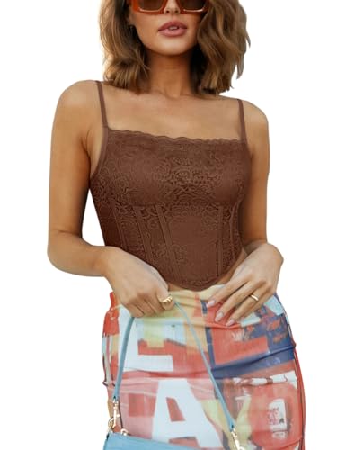 REORIA Womens Trendy Sexy Lace Strap Zip Back Going Out Boned Bustier Corset Tank Top With Built In Bra