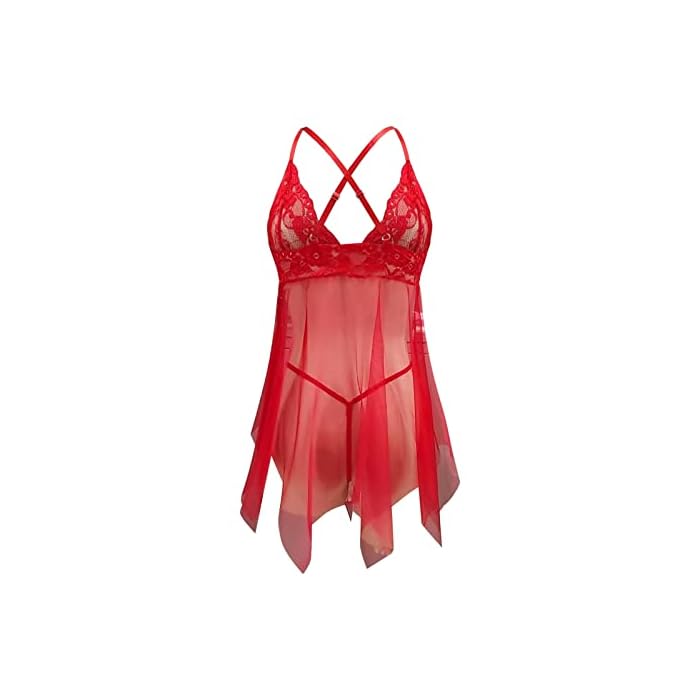 Sexy Undies Costumes for Ladies plus Size Womens Attractive Undies Slip Sleep Get dressed Deep V Neck Lace Splicing Hollow Out Mini Nightdress