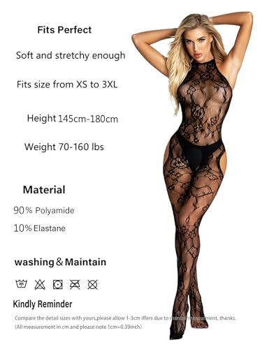 Sexy Women’s Fishnet Bodystocking Lingerie Set Floral High Elasticity Cutout Spaghetti Strap Hollow One Size Fits All