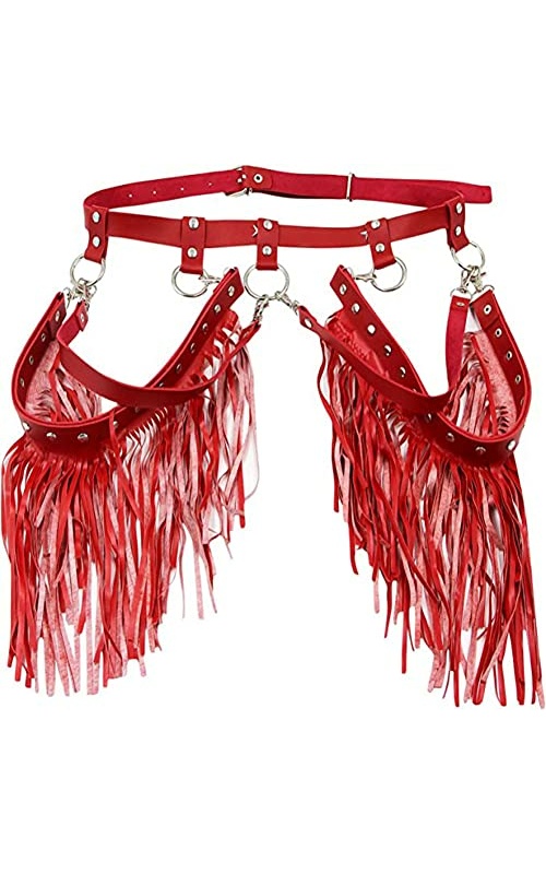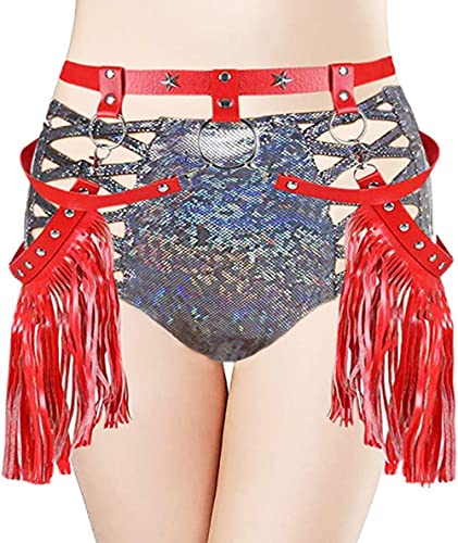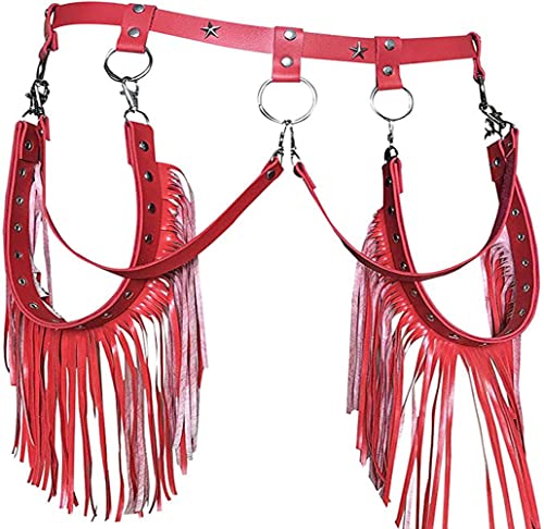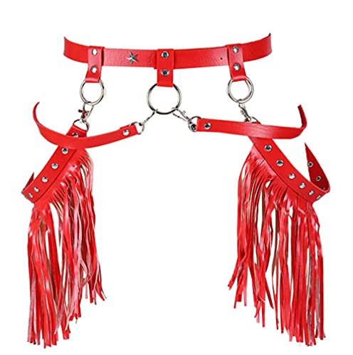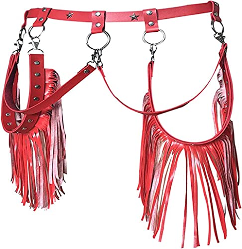 Women Body Harness Garter Punk Leather Waist Belts with Fringe Gothic Leg Tassel Belt for Dress Festival Dance Consume