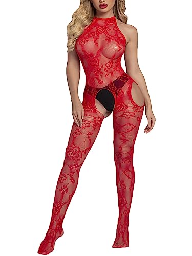 Women Fishnet Bodystocking Babydoll Lingerie Full Body Stockings Bodysuit One Piece V-Neck Bodysuits Strapless Mesh Chemise