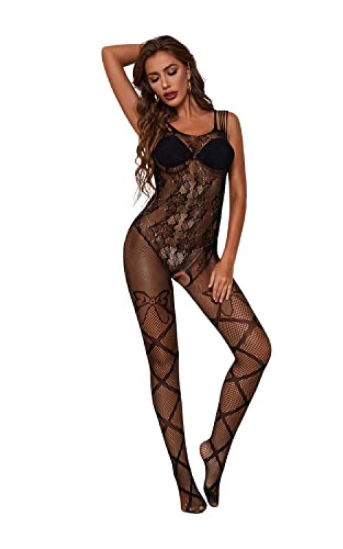 Women Fishnet Mesh Lingerie Bodystocking Lace Smock Badydoll See Through Chemises Full Body Bodystocking Bodysuits Nightwear