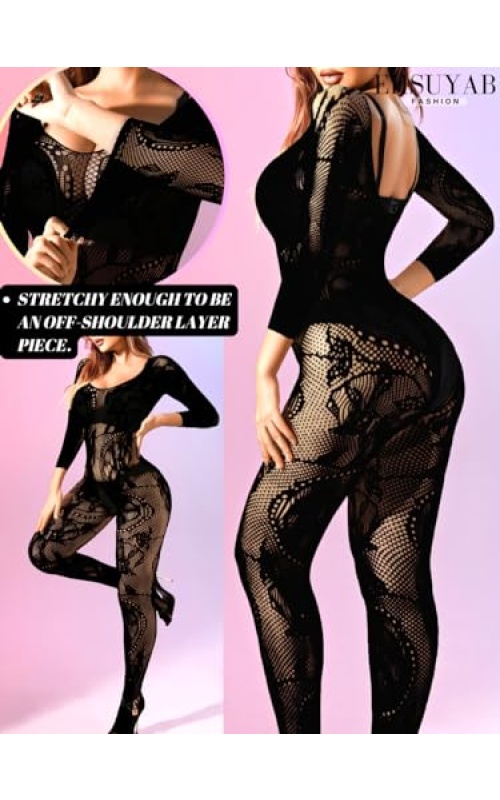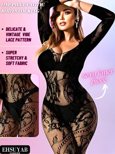 EHSUYAB Women Sexy Body Stockings, Fishnet Bodysuit Glow Party Rave, Exotic Dancer Wear Fishnets Lingerie Outfits Plus Size