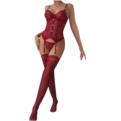 Womens Sexy Lace Up Lingerie Garter Teddy Bodysuits Babydoll Lace Trim Lingeries Deep V Outfits W