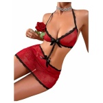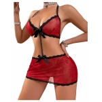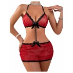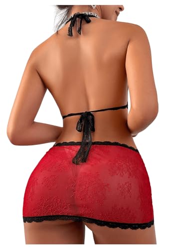 RoseSeek Women’s Lace Trim See Through Backless Bralettes Lingerie Skirt Halter Sleeveless Bow Babydoll Sleepwear