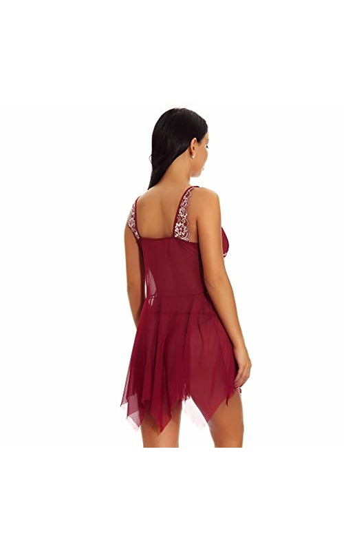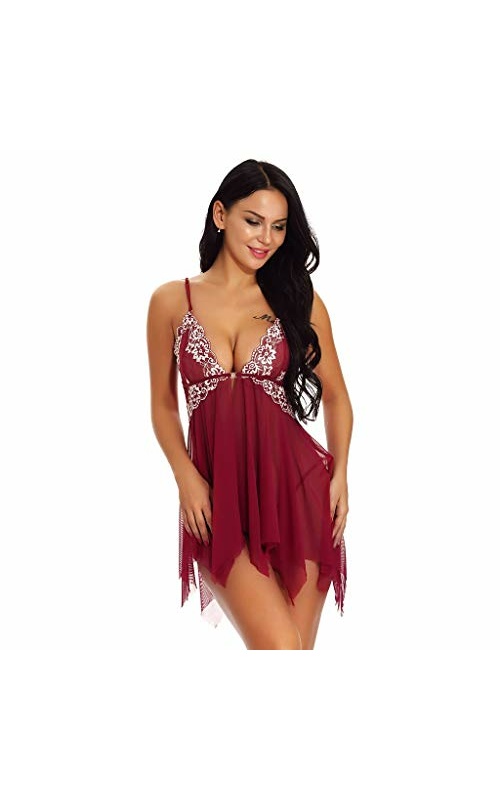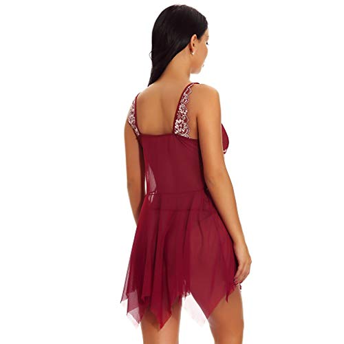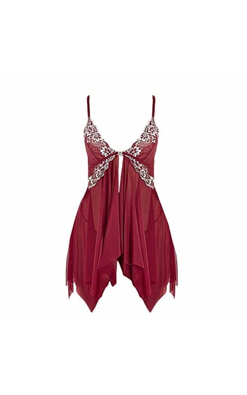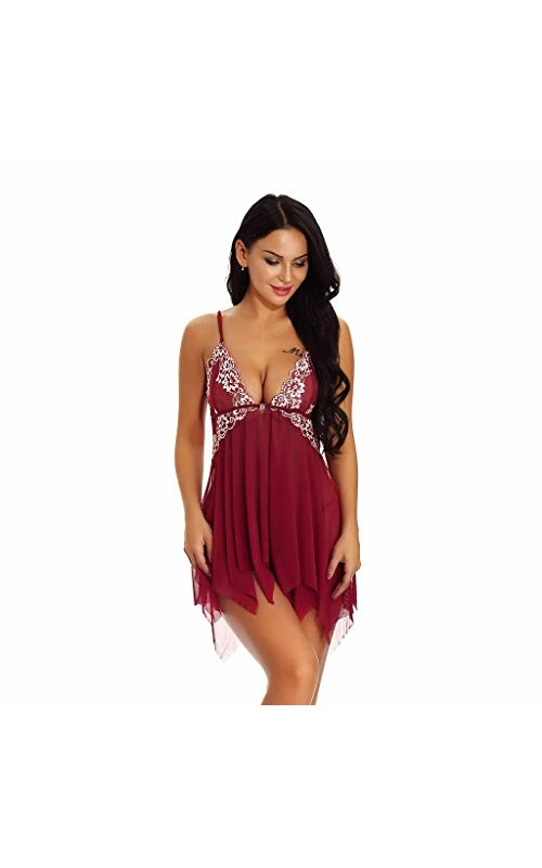 Womens Pajamas Bodysuit Bodysuit Sexy Split Ruffled Bodystockings Open Front Lace Trim Mesh V Neck Sleepwear Chemise